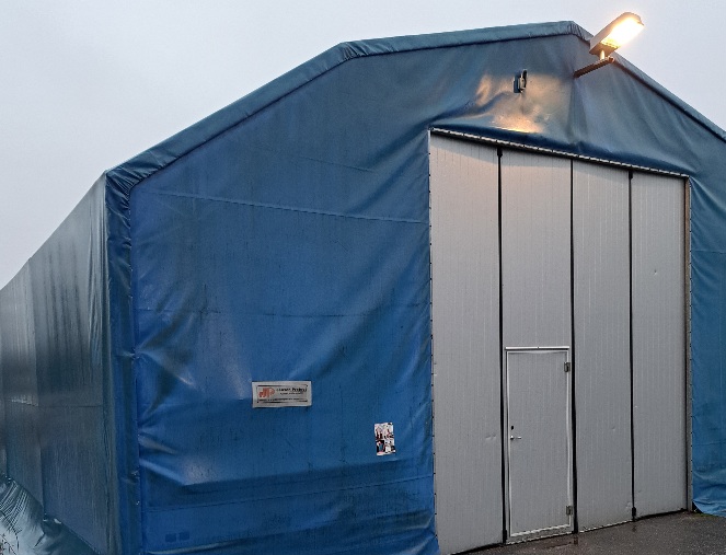 Vuokrataan kylmää varastotilaa: pressuhalli 10 x 20 m ovi 4 x 4,2 m käyntiovella vapautuu sop.muk